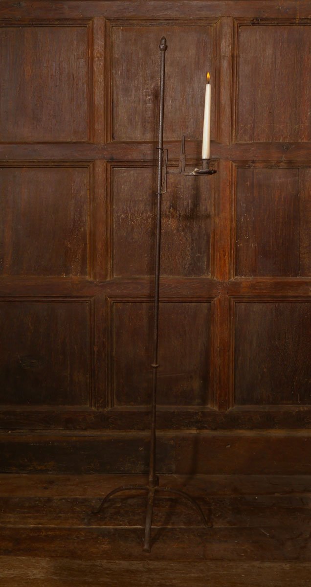 A Fine Mid-18th Century Wrought Iron Standing Rushnip and Candleholder