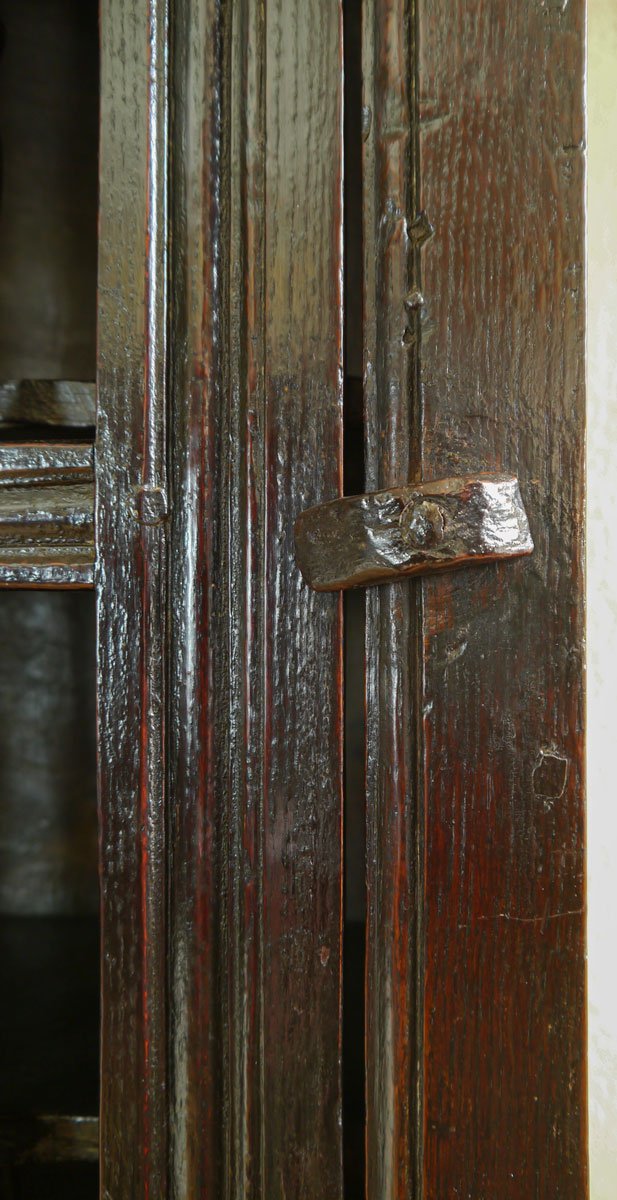 This rare little cupboard has a superb rich patina and surface, especially over the front of the turned spindles.
