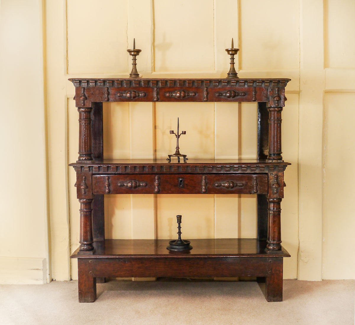 A Rare Small Charles I Oak Open Cup-Board or Buffet