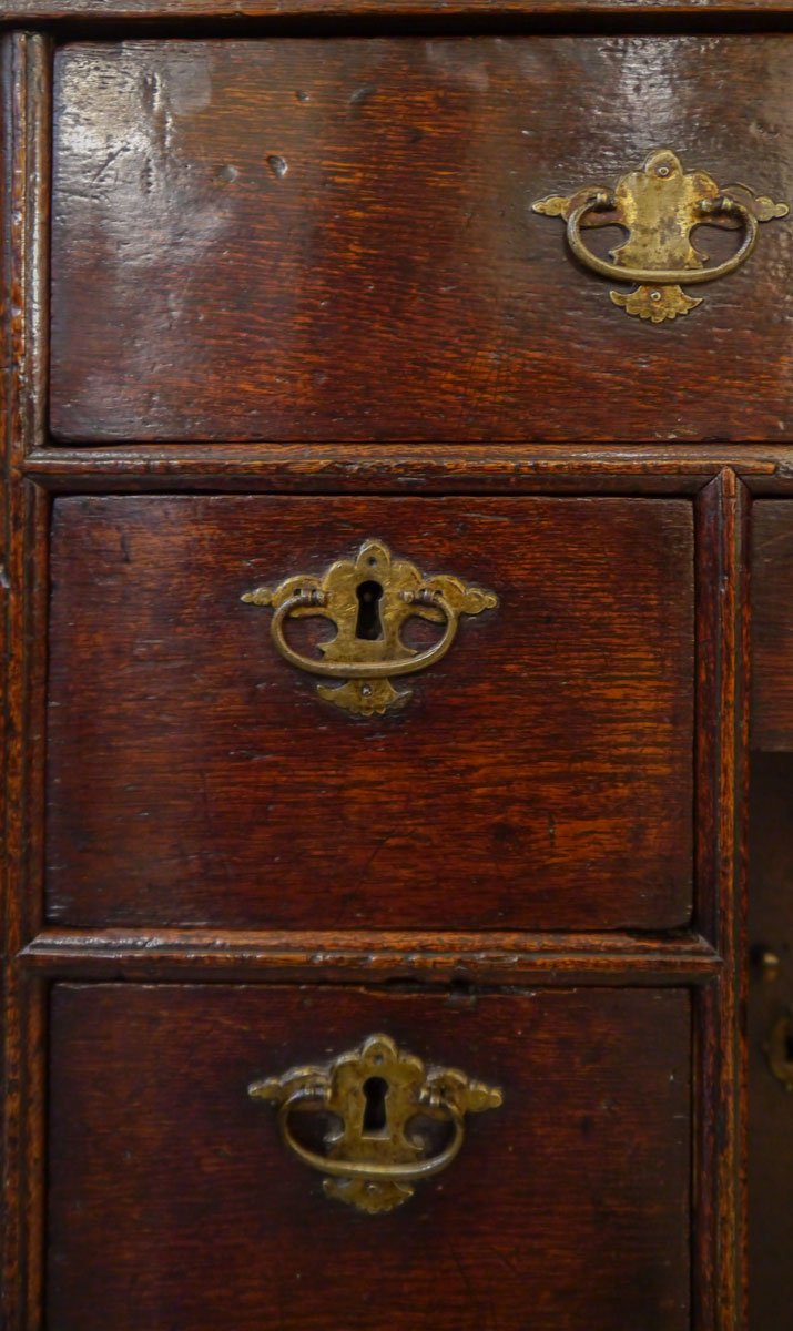 It must be assumed that this piece was made for a wealthy country family around 1700-1710, and has had quite a gentle life, as the condition is so original. It is very unusual to find this form of desk made in oak as they are more usually from walnut or, later, mahogany.